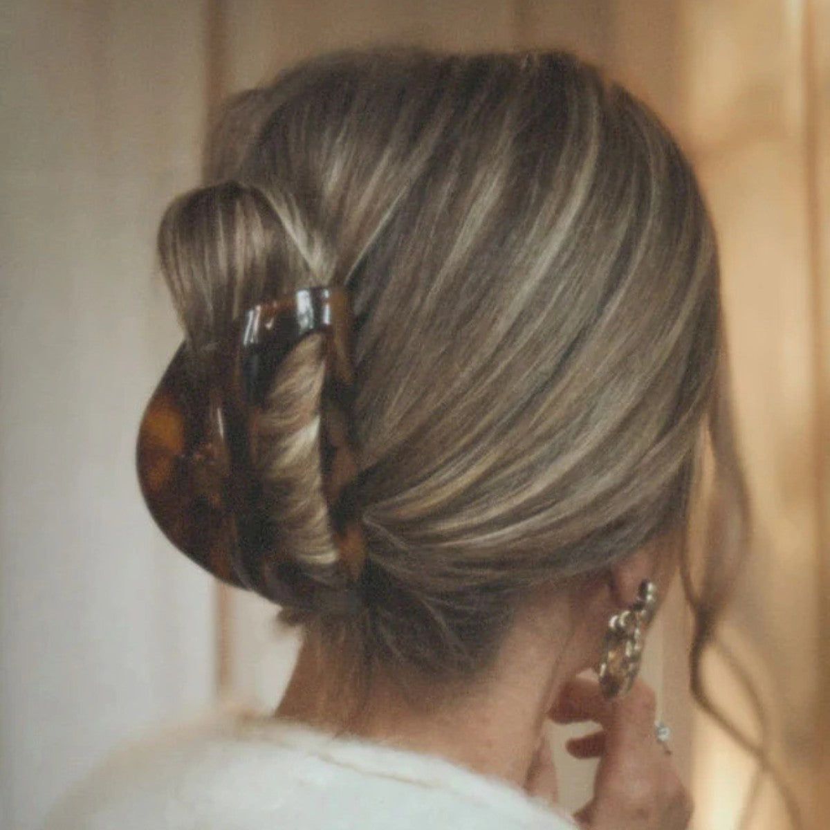 What it is: An elegantly curved French cutout hair claw from Chelsea King in a tortoise shell design.